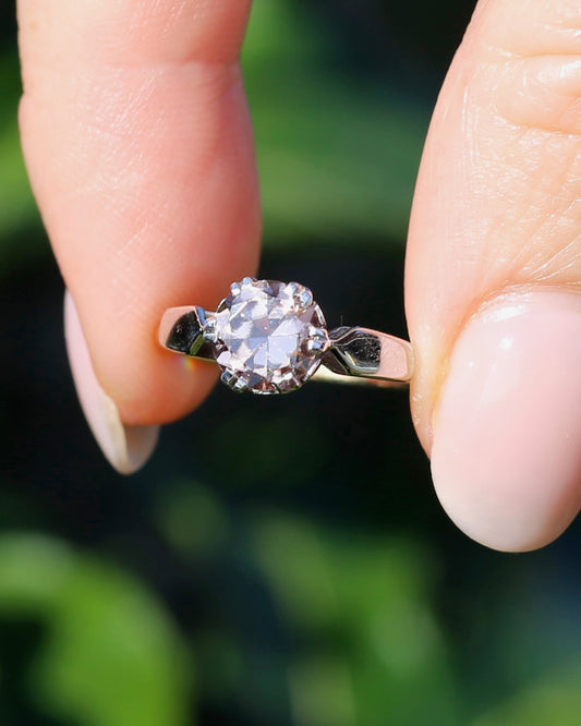 Vintage 1.86ct Pale Pink natural Zircon, 1967 London Made Double Claw Set, 9ct Yellow and White Gold, size M1/2 or 6.5, 2.8g