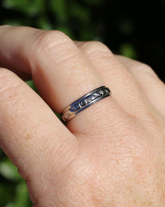 Vintage Patterned 18ct White Gold Wedding Band, 18ct White Gold, size 9 or S