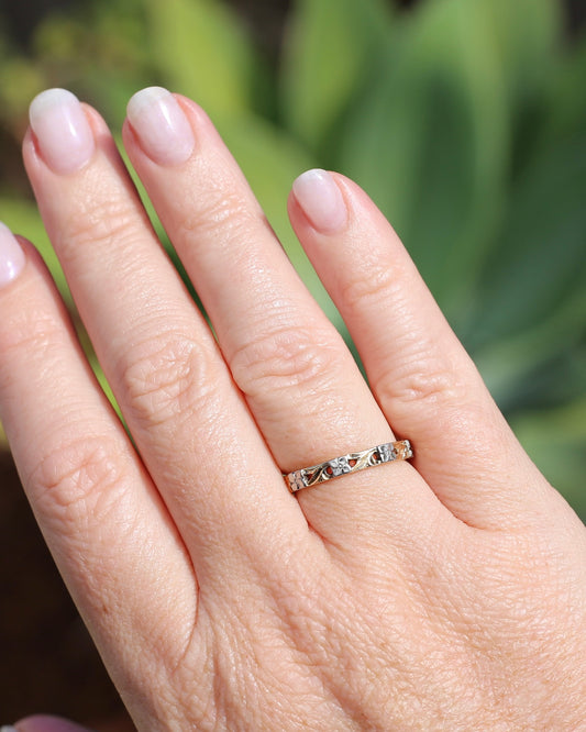 ON HOLD Delicate Vintage Australian Parti Toi et Moi, 9ct White and Yellow Gold, size N or just over 6.75, 1.39g