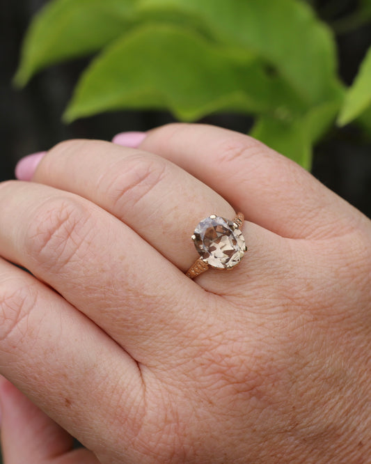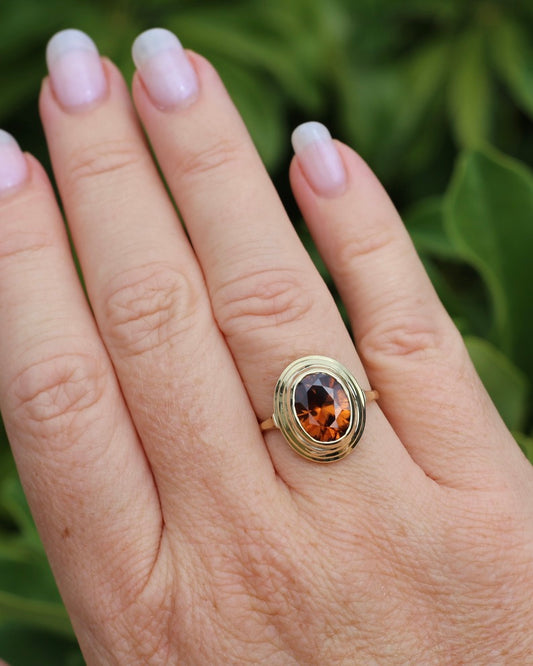 4ct Whisky Zircon in Vintage Old Rosey Gold Ring, 9ct Old Rosey Gold, size M or just over 6, 2.18g