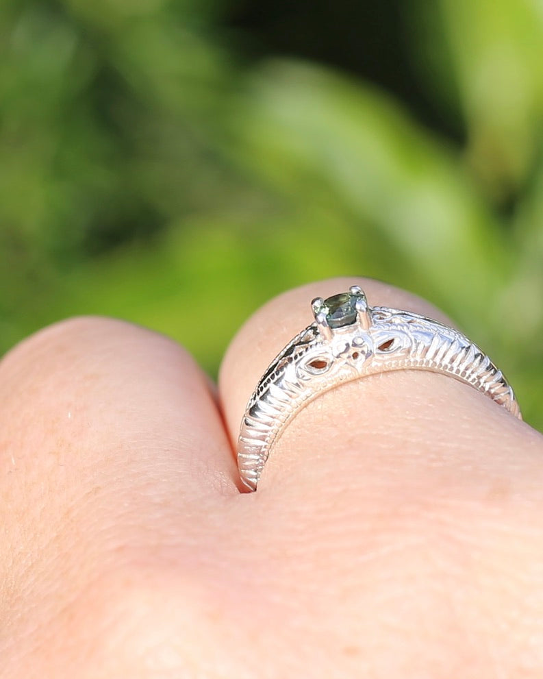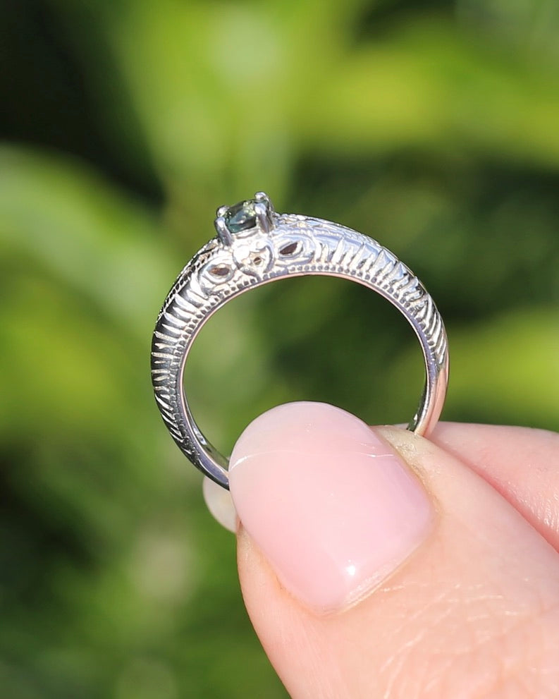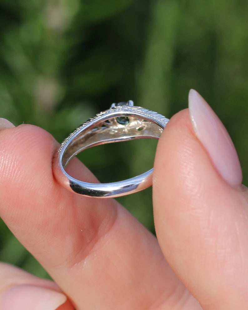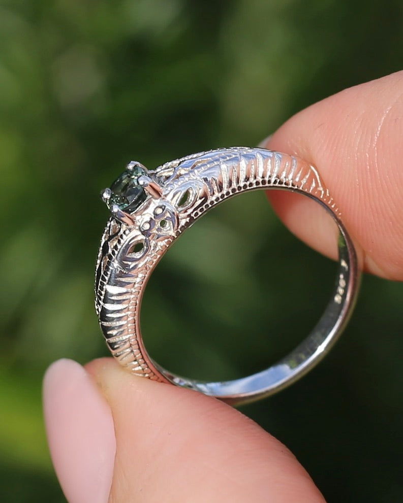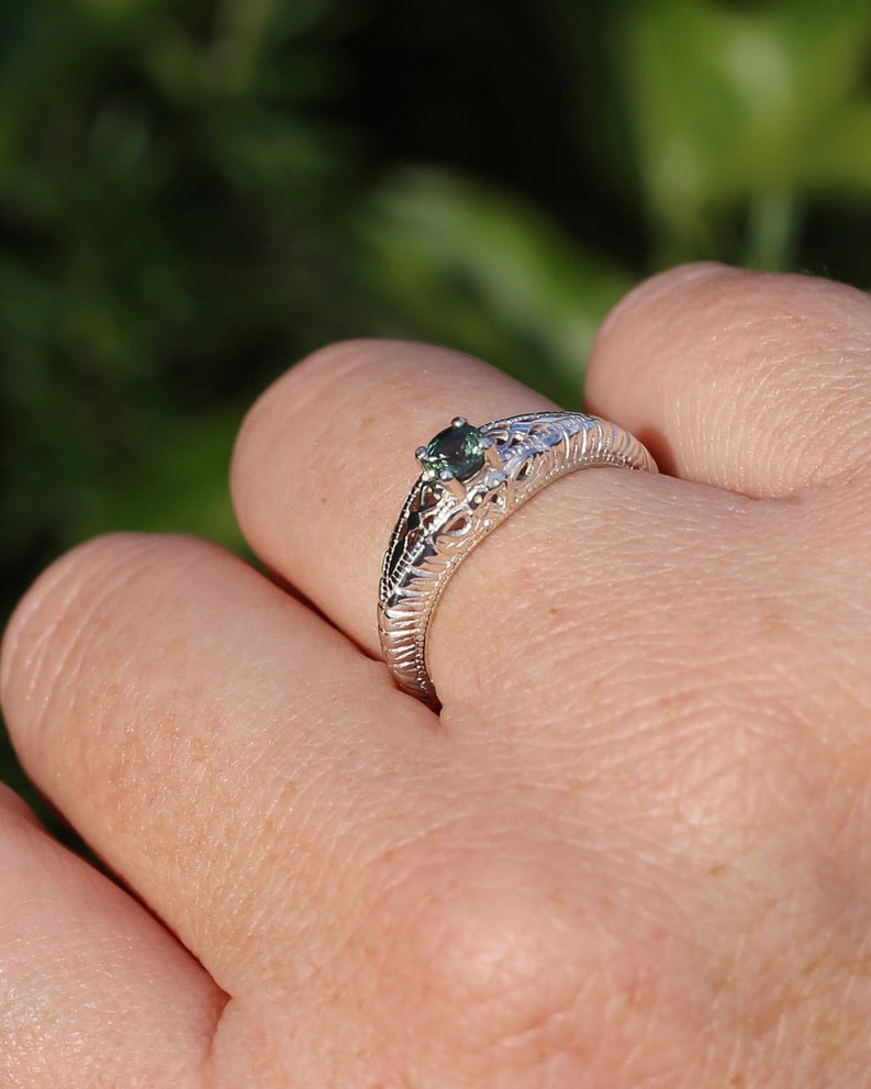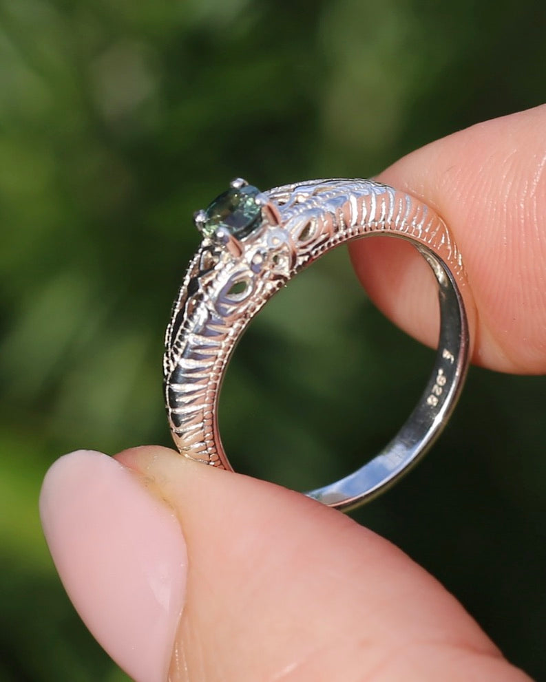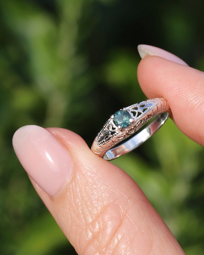 0.4ct Parti Sapphire Solitaire, Silver Filigree Ring, size N1/2 or 7, 2.6g