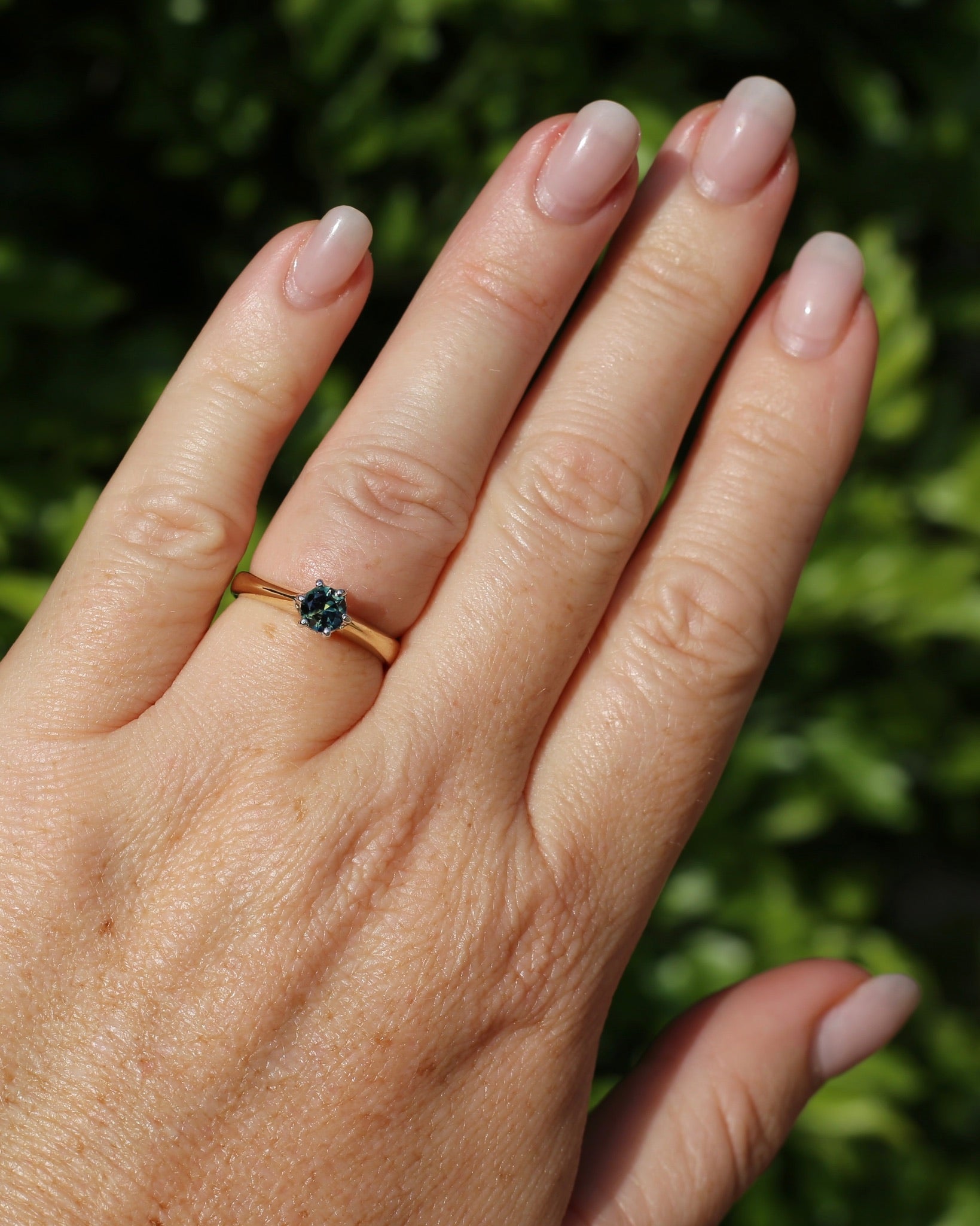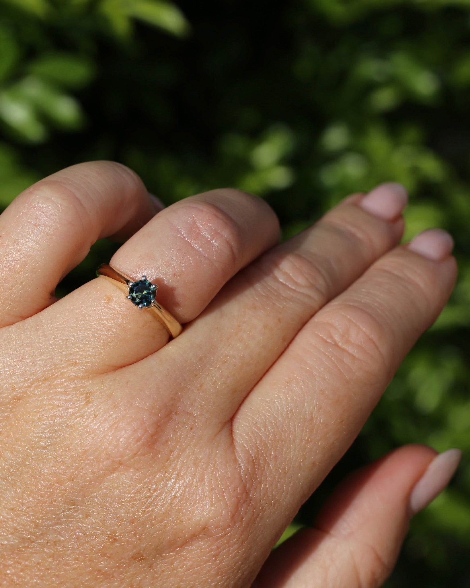 0.55ct Australian Parti Sapphire, 6 Claw Setting, 9ct White and Yellow Gold, size 7 or O, 3.52g