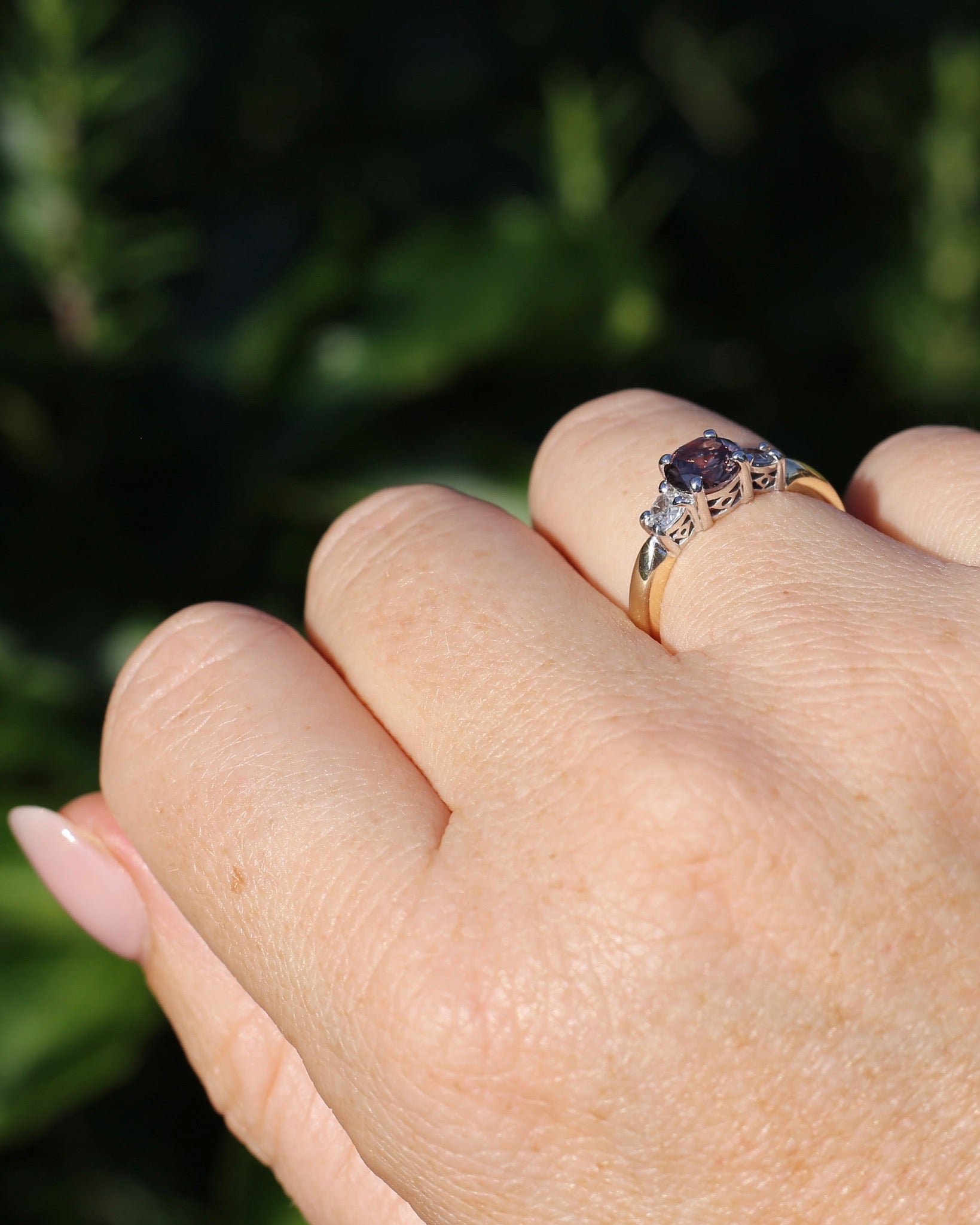 The side stones - are natural old cut white zircons - look at those rustic facets and open culets - and these came with the ring. The original centre stone was a sapphire (dark and included) and we are so thrilled that we could replace it with a third zircon of the most marvellous sparkle and those molten pinky caramel hues. Zircons are some of the sparkliest natural stones in the world - and some of the oldest- particularly the Australian ones - and we love the knowledge that these stones have been around for literally billions of years.