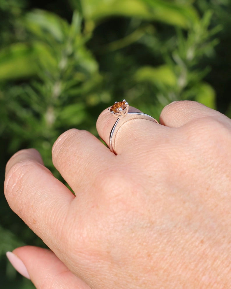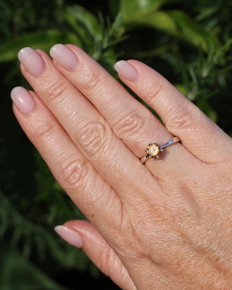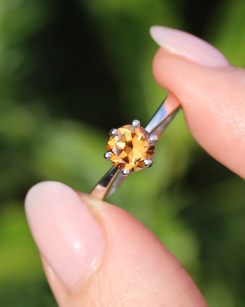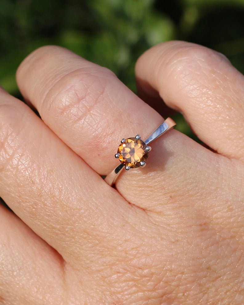 Set in a 6 claw setting, this offers a fabulous simple setting that highlights the stone and offers the girdle some protection. A perfect stacker.