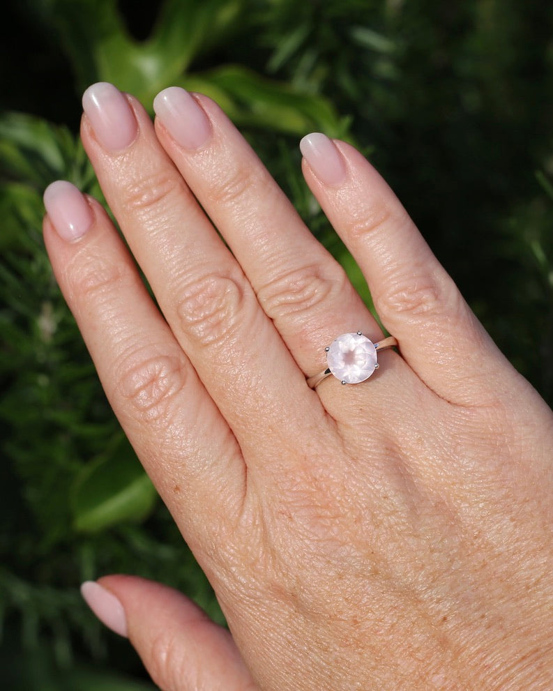 3.7ct Rose Quartz (10mm) Solitaire Ring, Sterling Silver, size O or 7.25, 3.57g