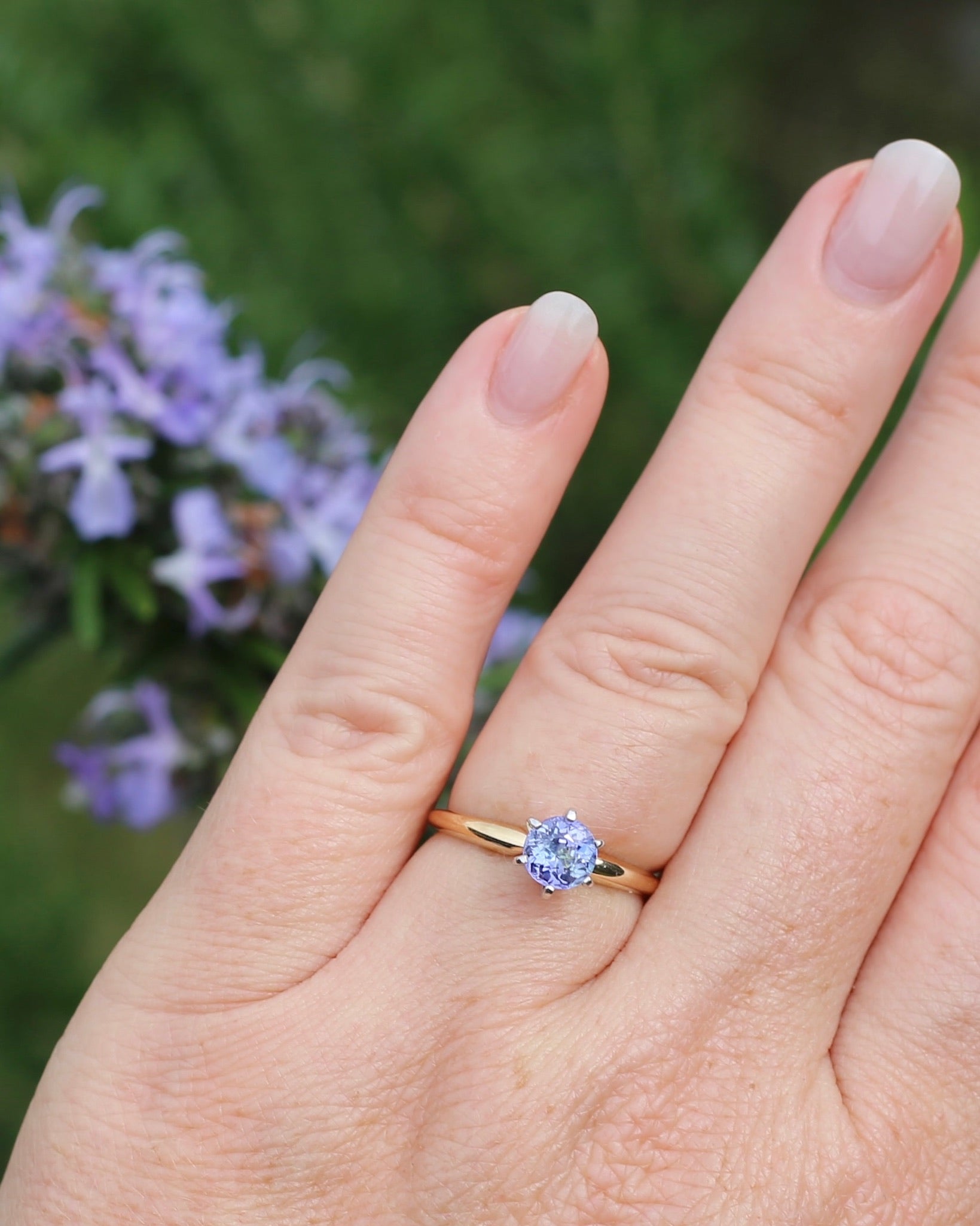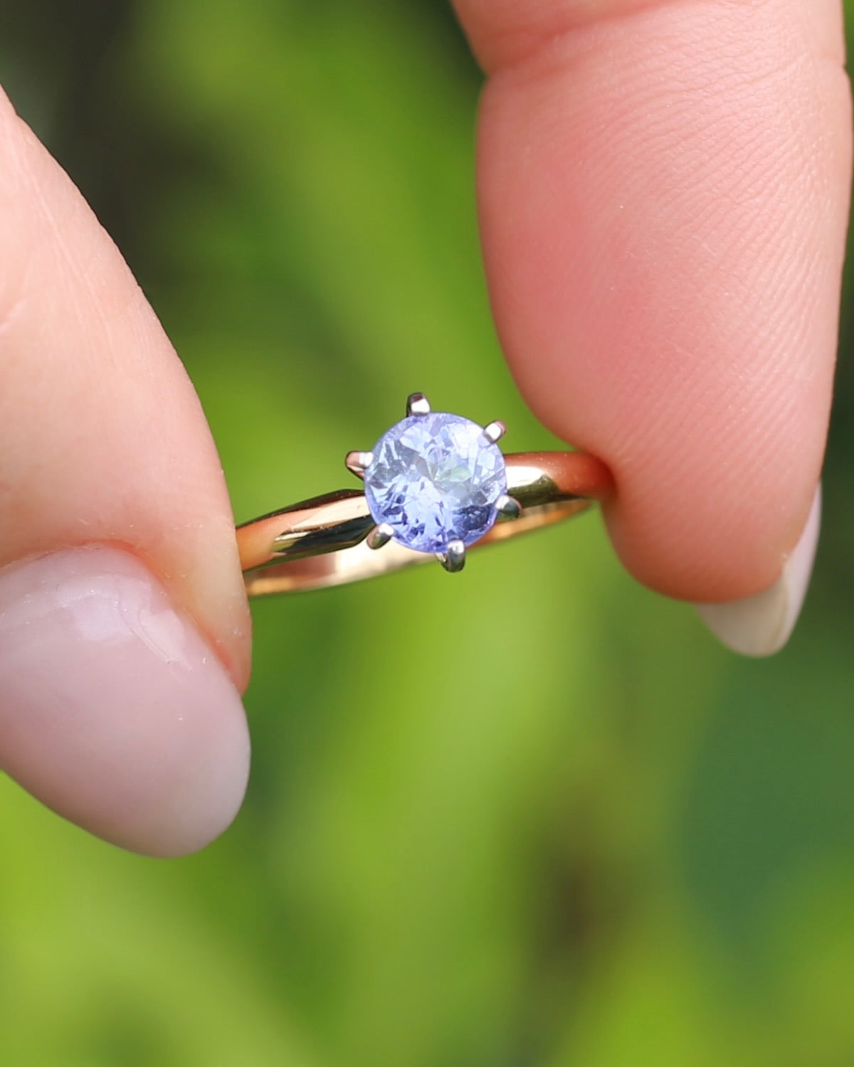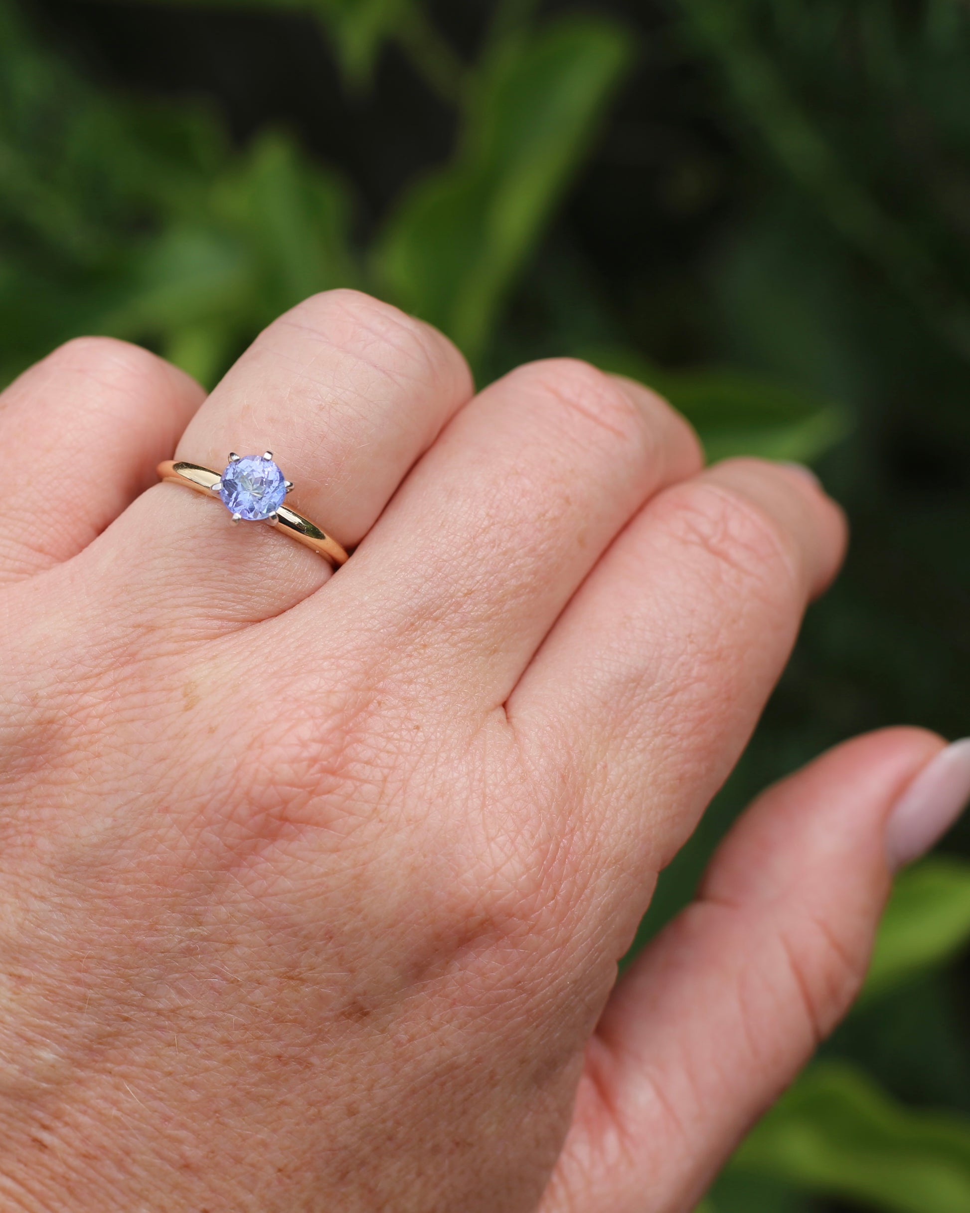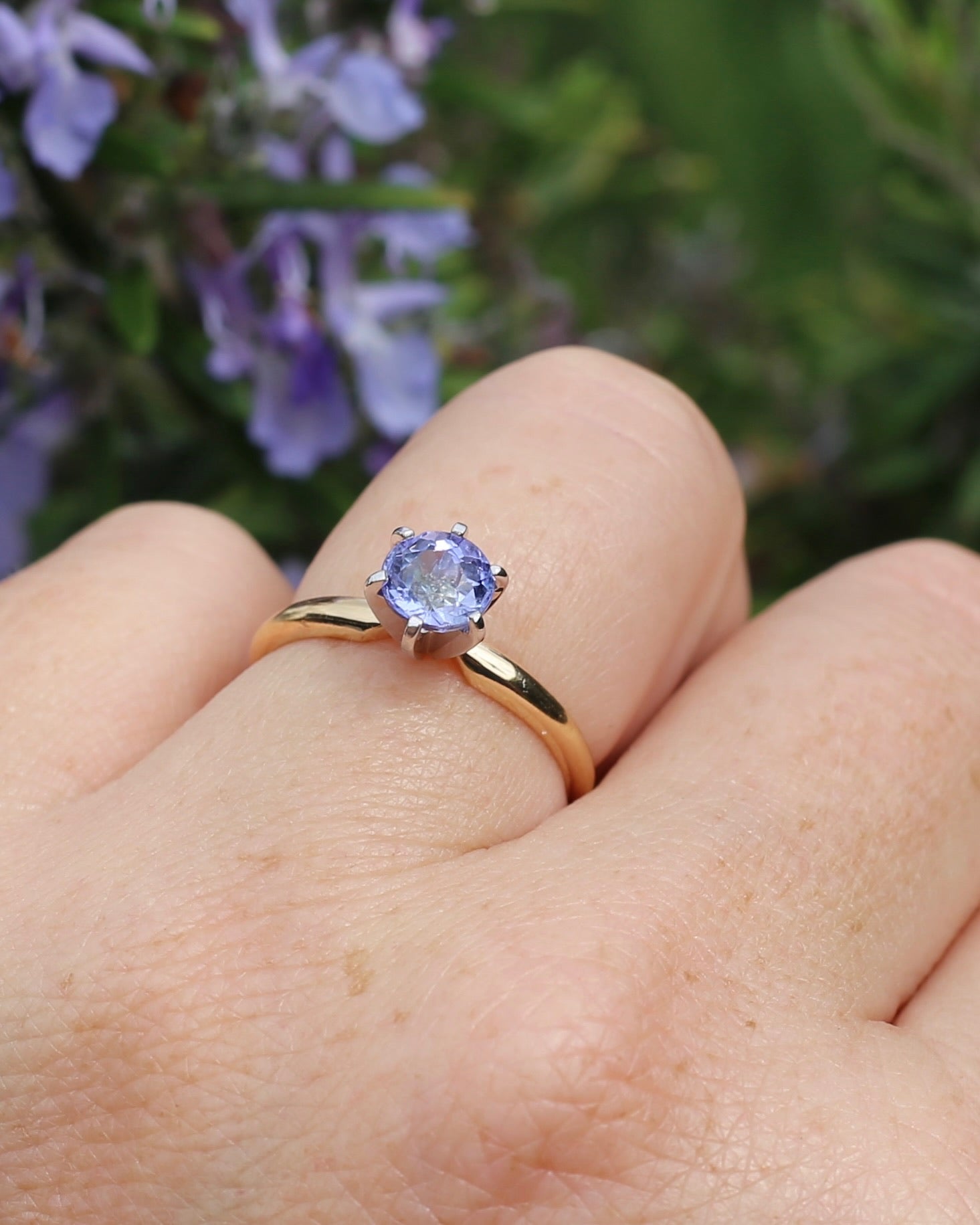 6mm Tanzanite Round Solitaire, 14ct Yellow and White Gold, size N1/2 or 7, 2.57g