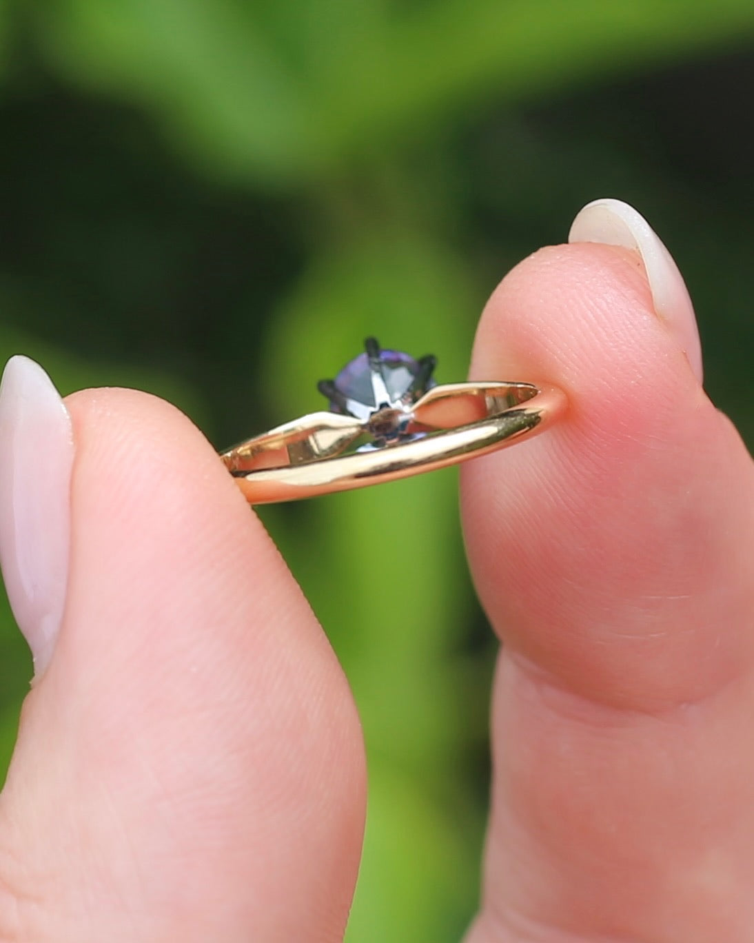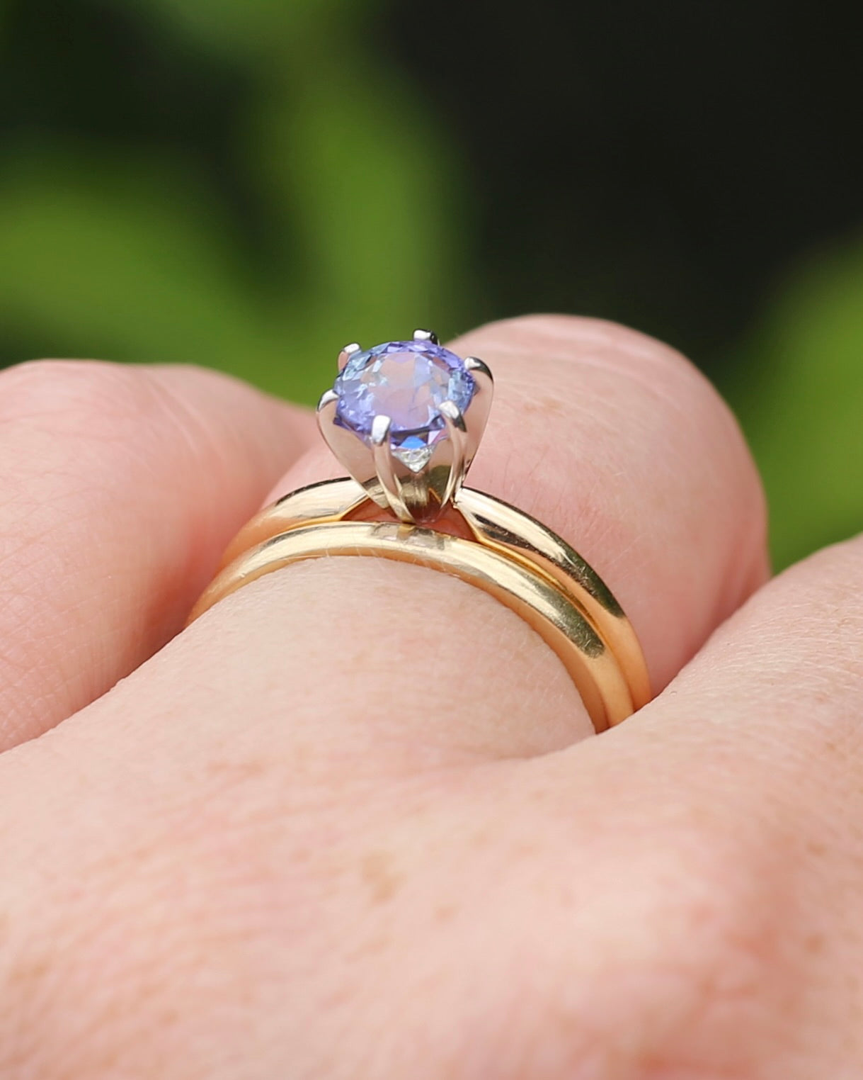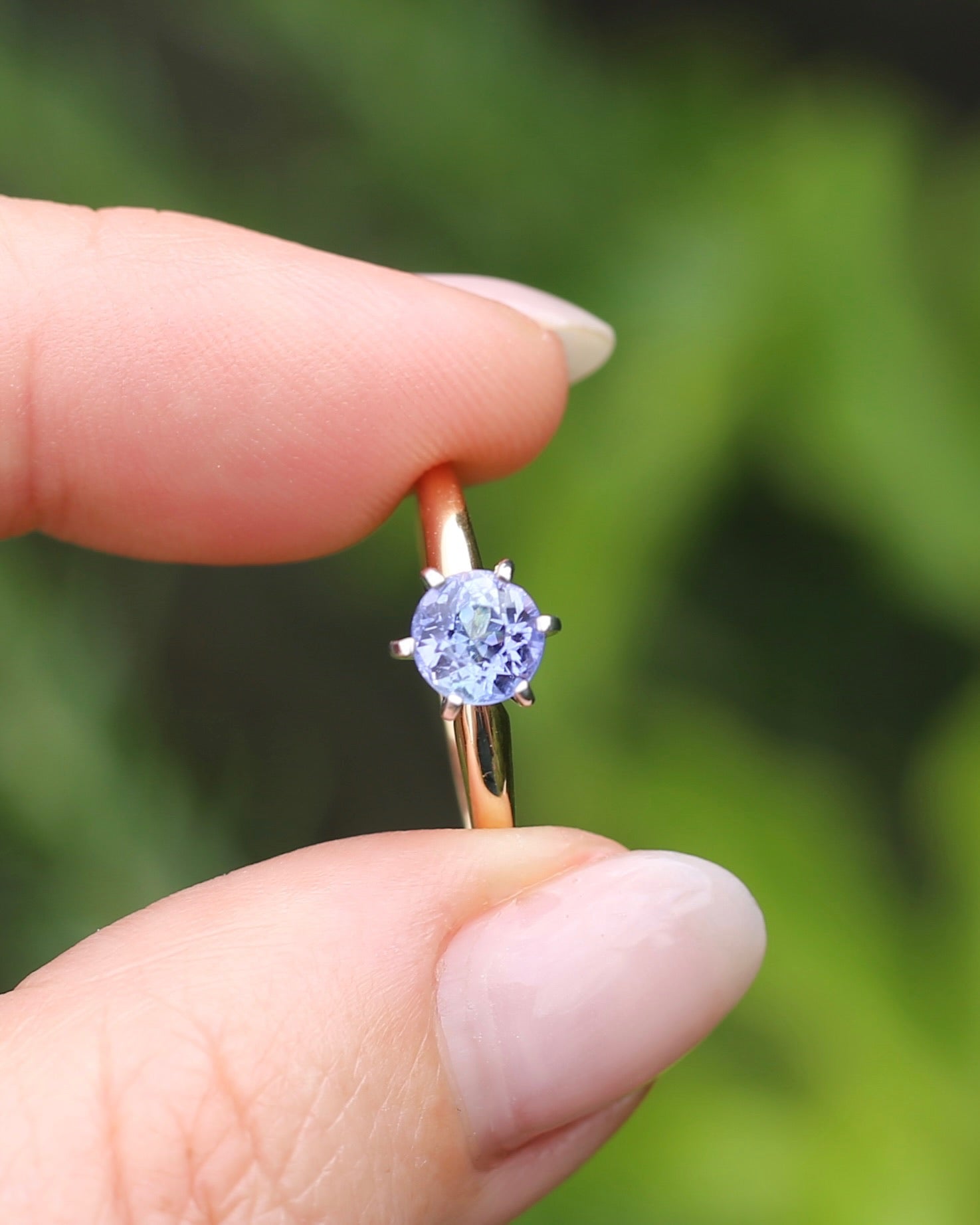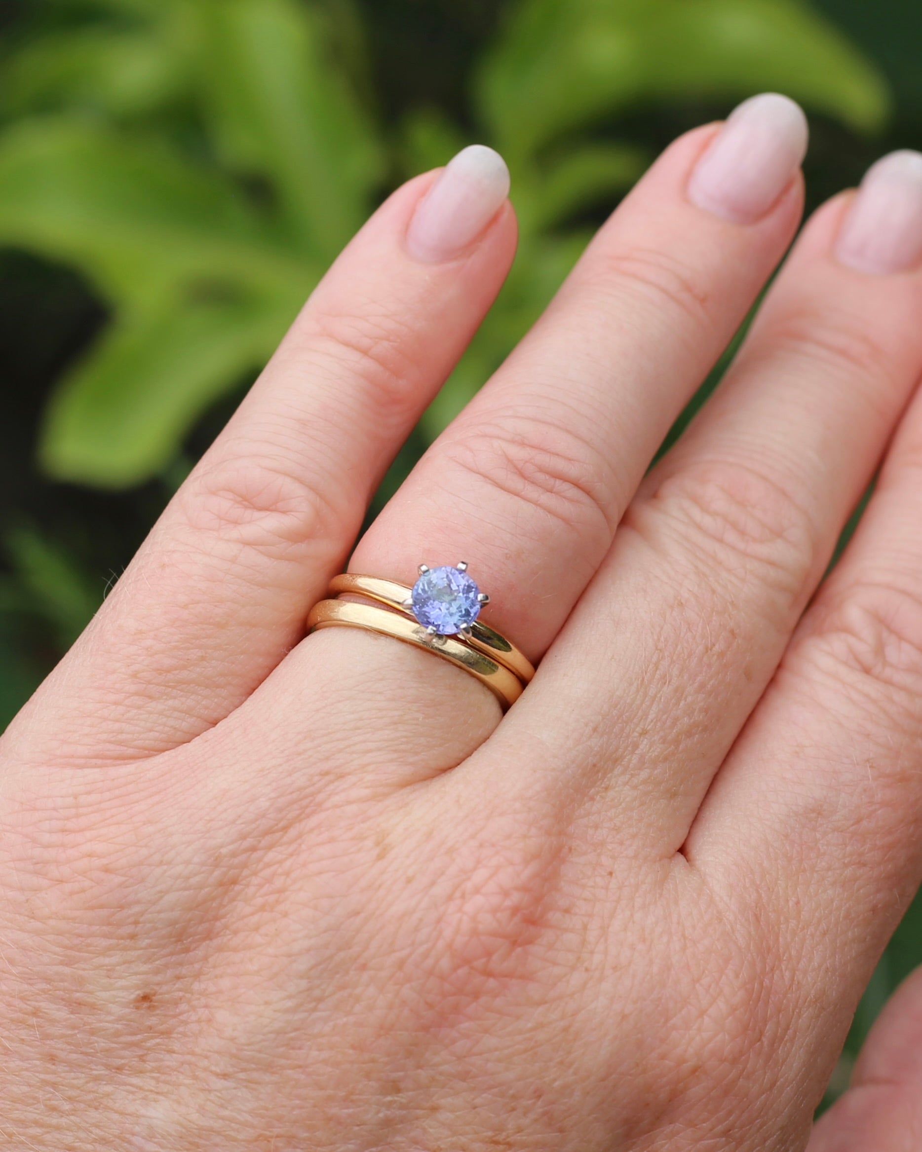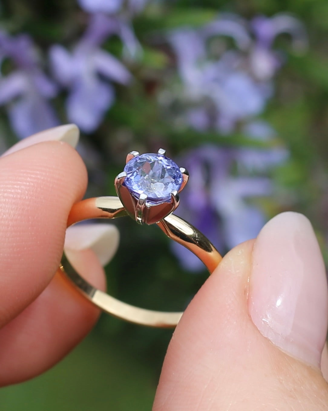 6mm Tanzanite Round Solitaire, 14ct Yellow and White Gold, size N1/2 or 7, 2.57g