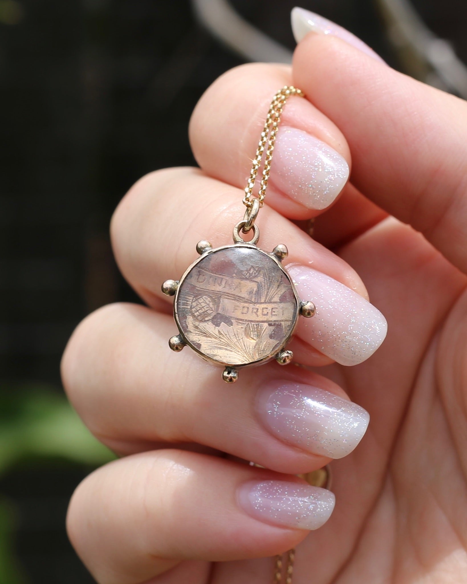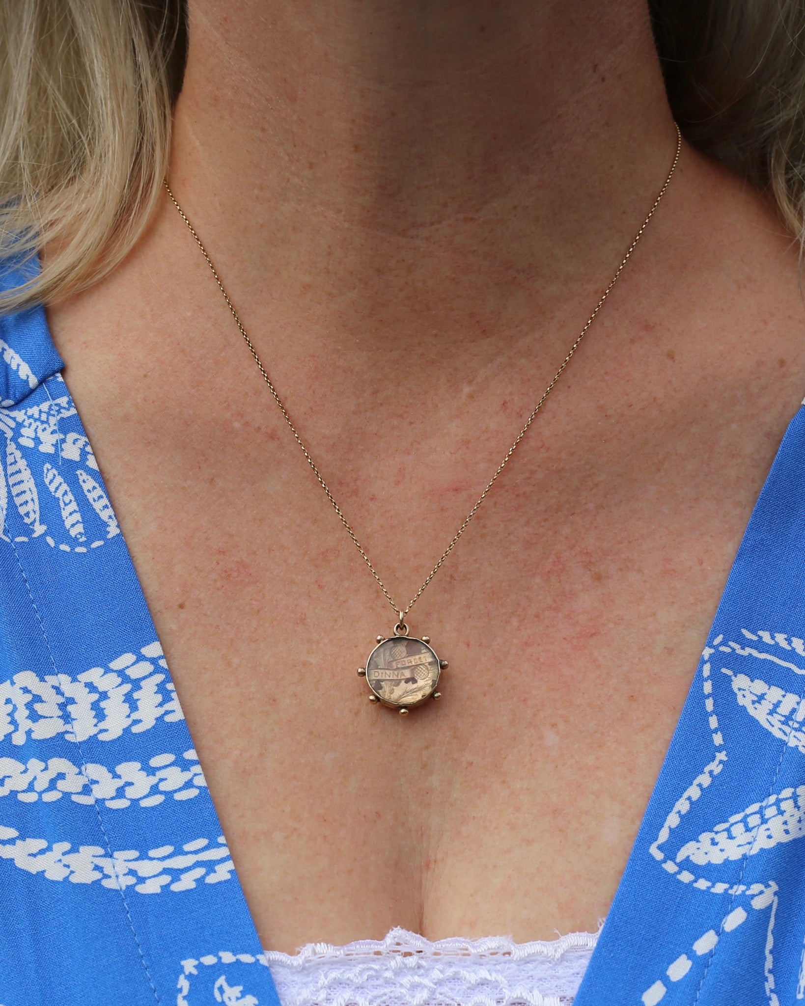 Calling all our Scottish fans. This utterly amazing "Dinna Forget" thistle pendant in the style of a Victorian Locket is just the most amazing treasure. From the thistle to the use of the Scot's phrase "Dinna Forget" this pendant is dripping in fabulous Scottish imagery. These pendants were actually often a love token - particularly in WW1 here in Australia - given to their true love not to forget them while they were apart (Dinna Forget translates to "don't forget"). Given the wear on the resin (and use of resin over glass) this beauty does look like it has travelled the world in a pocket as a reminder of someone dear at home, maybe even in those WW1 greens. This pendant is rustic and speaks of generations of wear and love - it carries a tale and we are so enamoured by it.