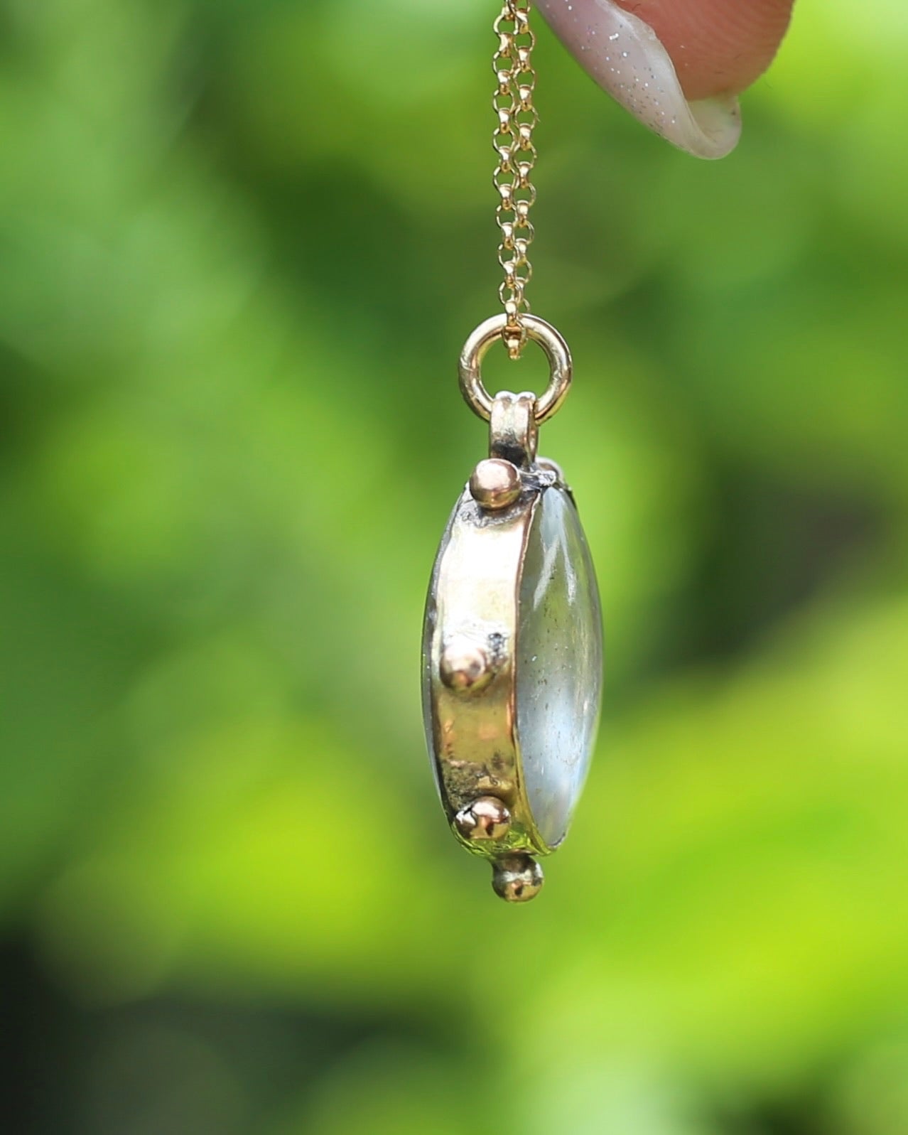 Condition - this is a pre-loved pendant - it has had the balls added, the gold locket frame repaired and the resin is marked - inside and out. This is likely a WW1 love token and it is has been adored.
