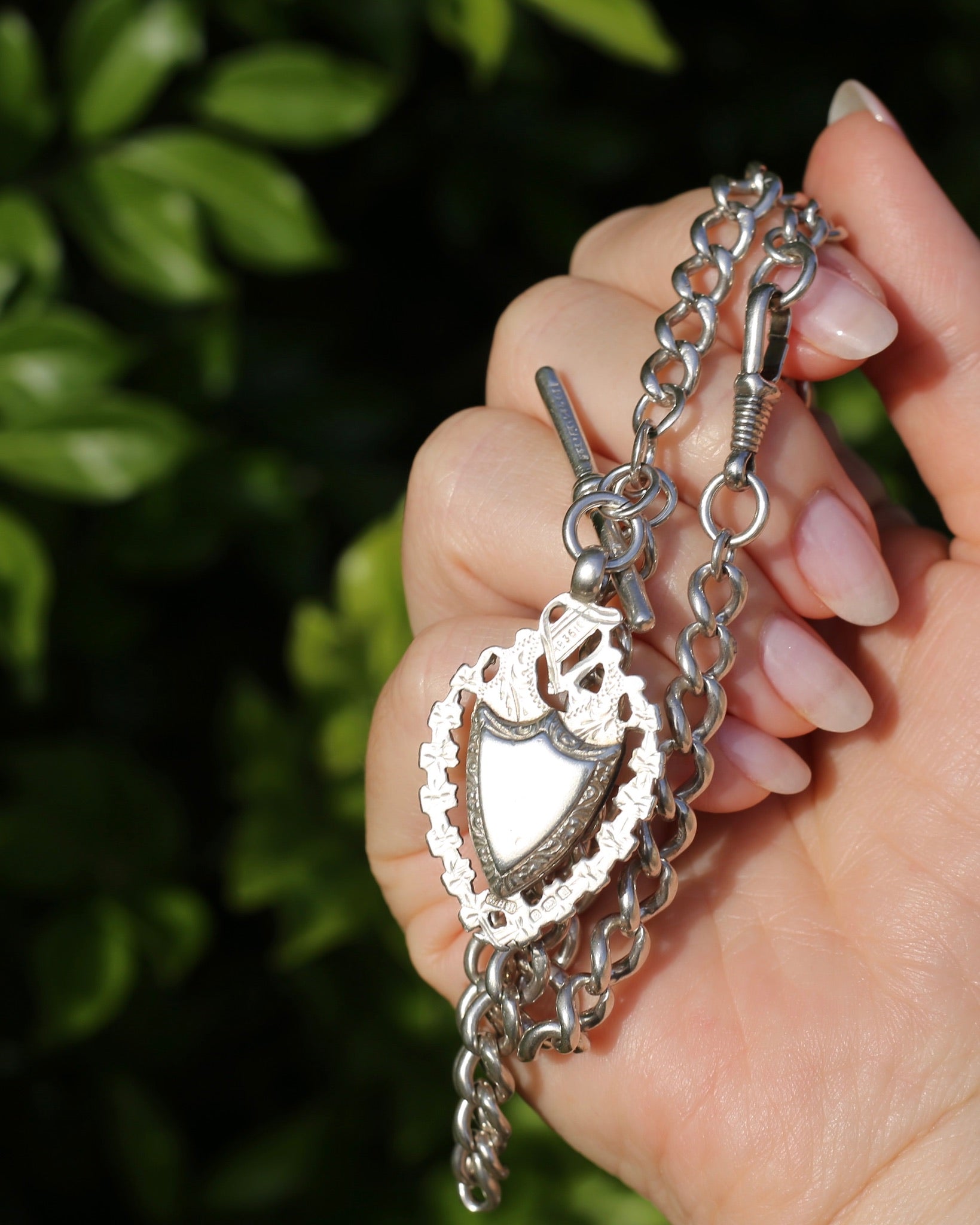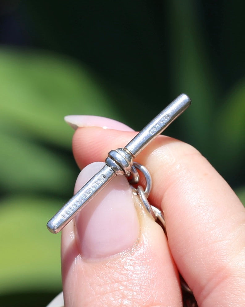 Birmingham Made 1903 Sterling Silver Watch Chains, Fob and T-bar, 47cm or 18.5 inches, 52,6g