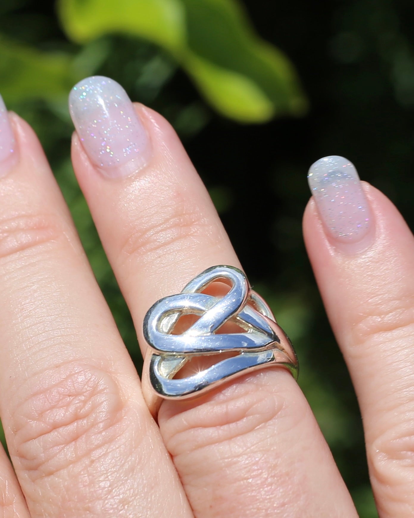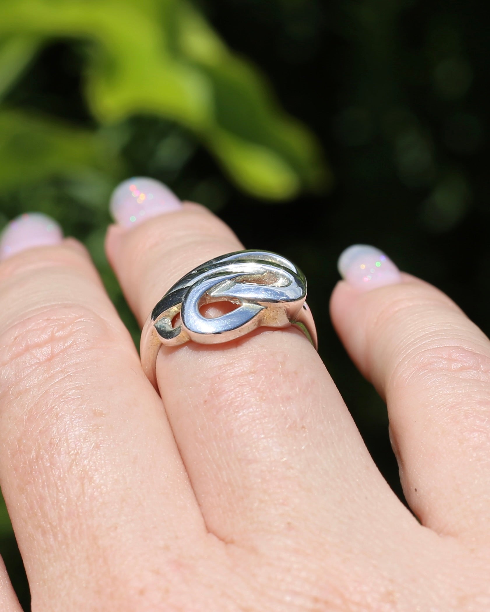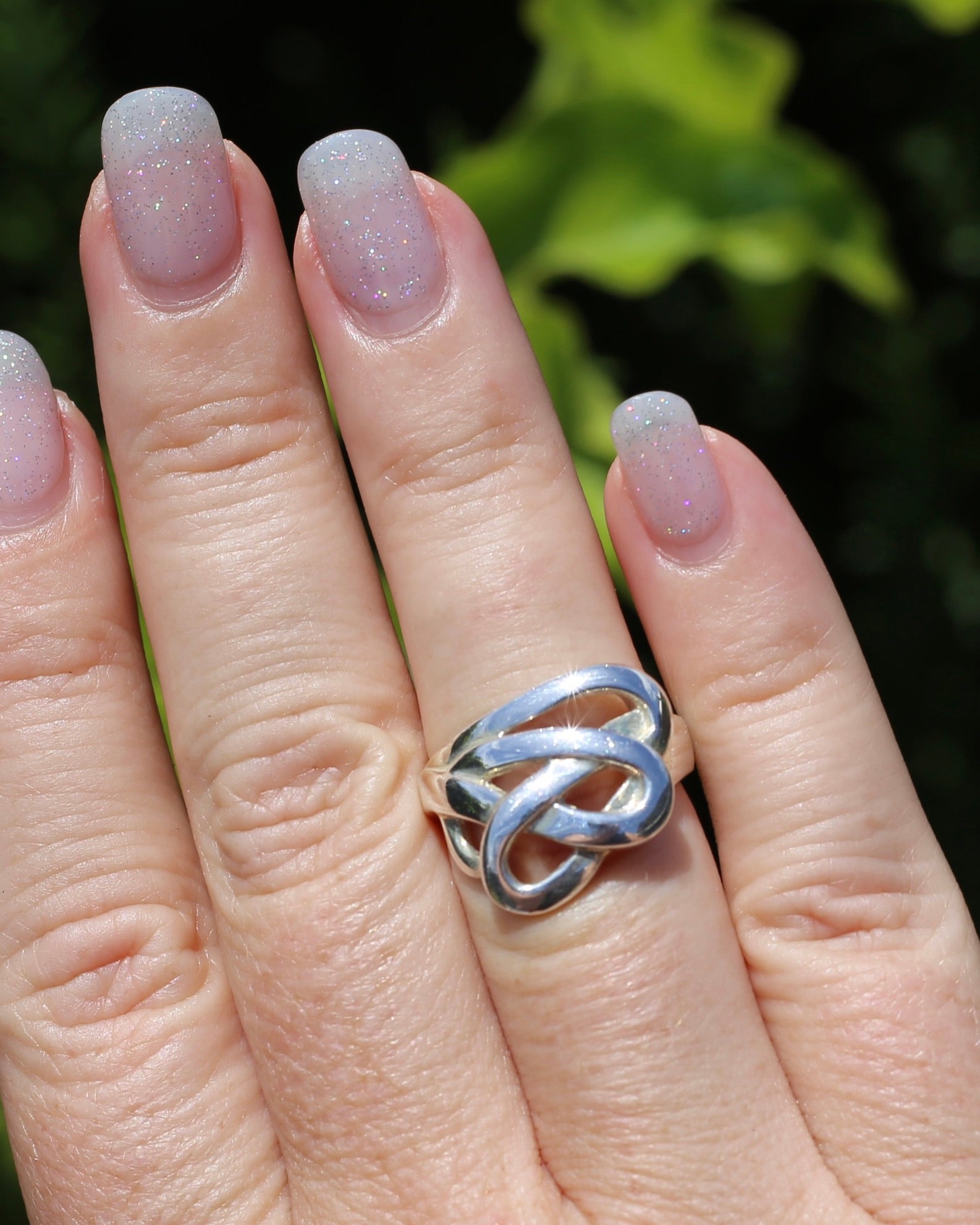 Celtic feel jewellery has had so many resurgences over time - the Charles Rennie McIntosh Era of the 1990s was the first I lived through and now Outlander has brought all things Scottish back to the fore. This is not a classic Scottish Celtic pattern - more just a Celtic feel- and the chunky silver offers such fabulous finger coverage.