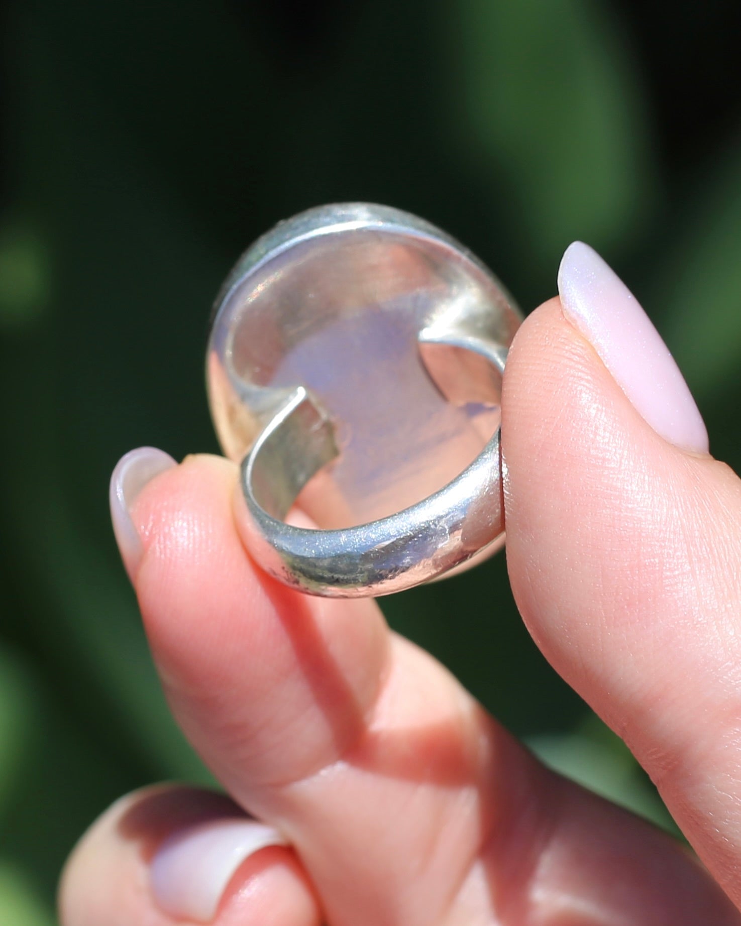 Bezel set in chunky silver and on a chunky silver band this ring is weighty and has real presence. But it is super wearable - the face is relatively low profile and the chunky band makes it really comfy to wear.
