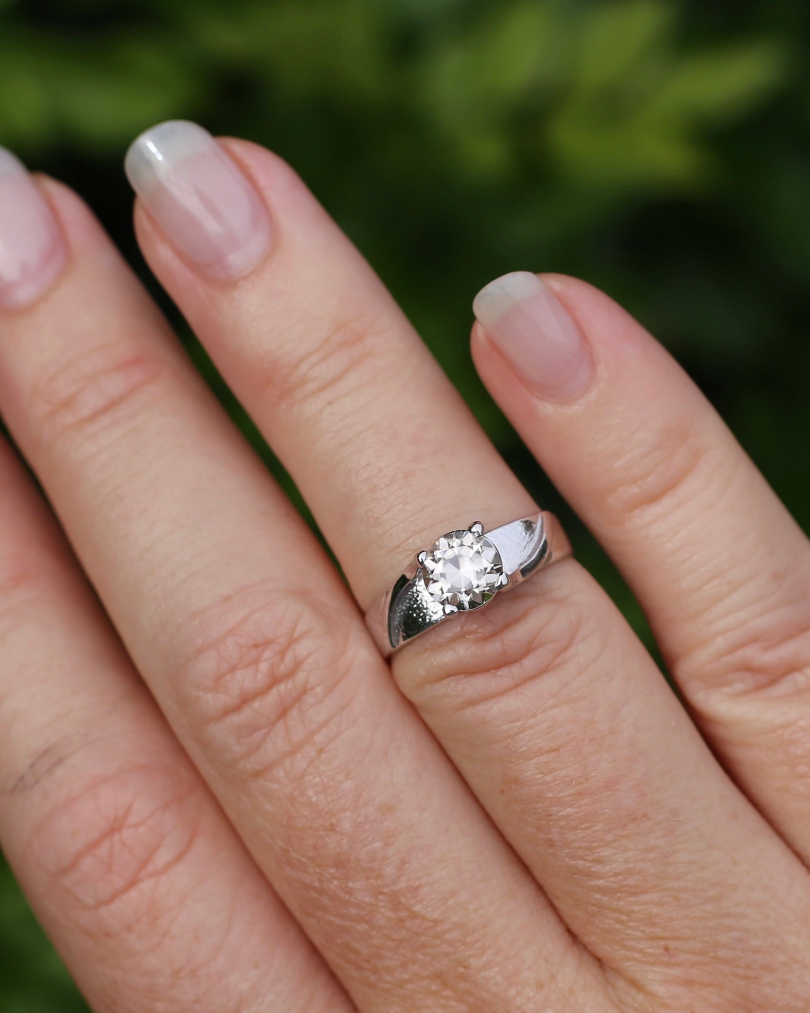 Circa 1970s 1.57ct White Pink Australian Zircon Ring, 9ct White Gold, size N or 6.75, 3.44g