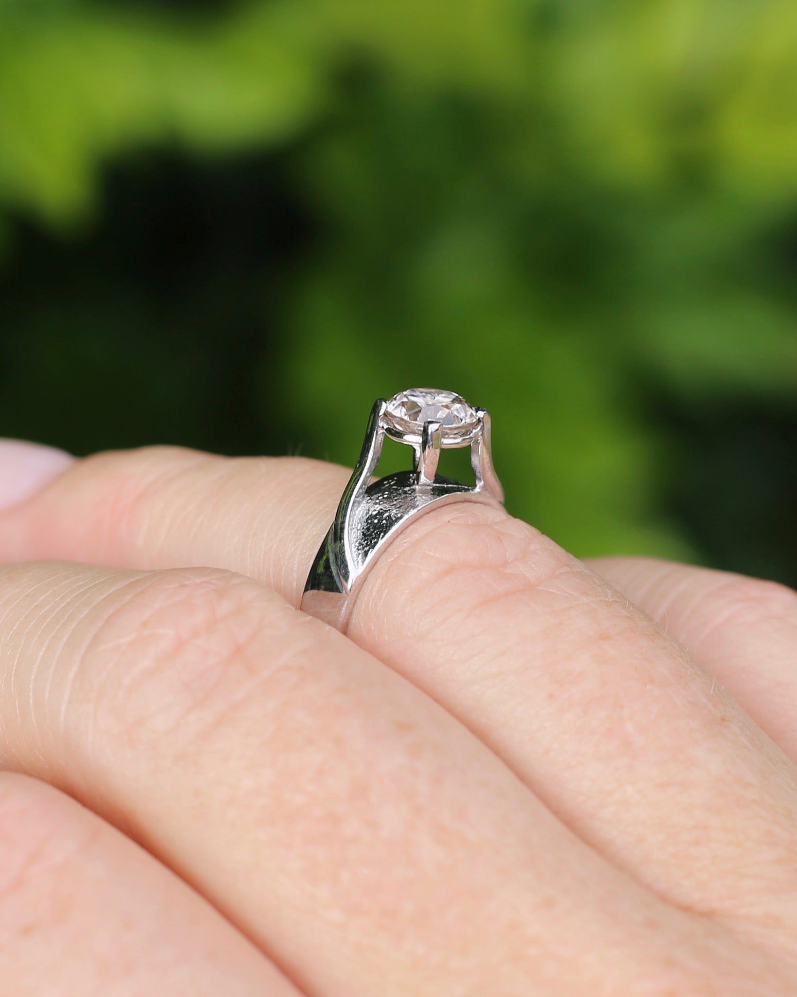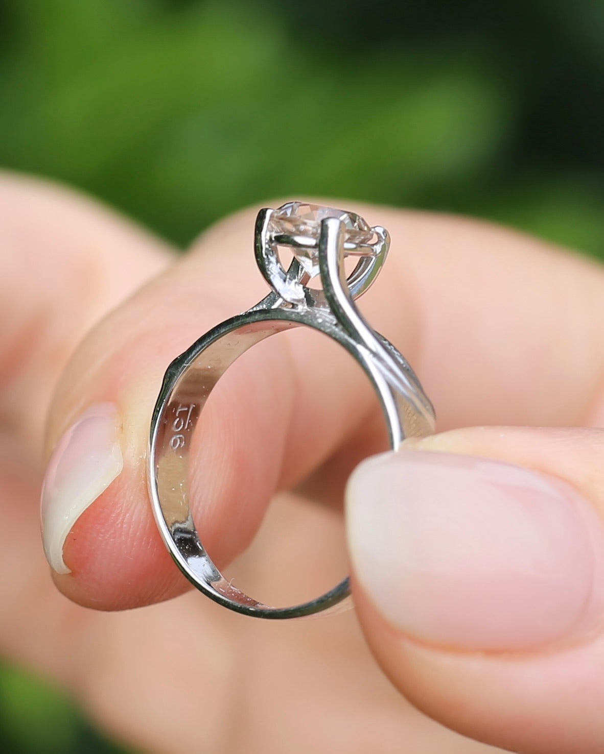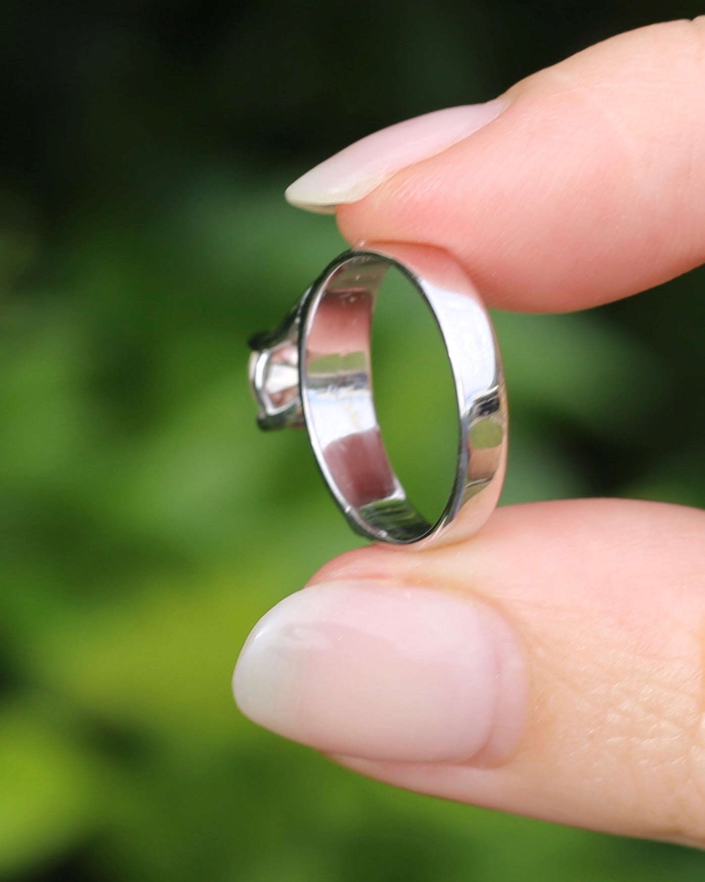 Condition - new stone, light wear to ring, freshly rhodium plated
