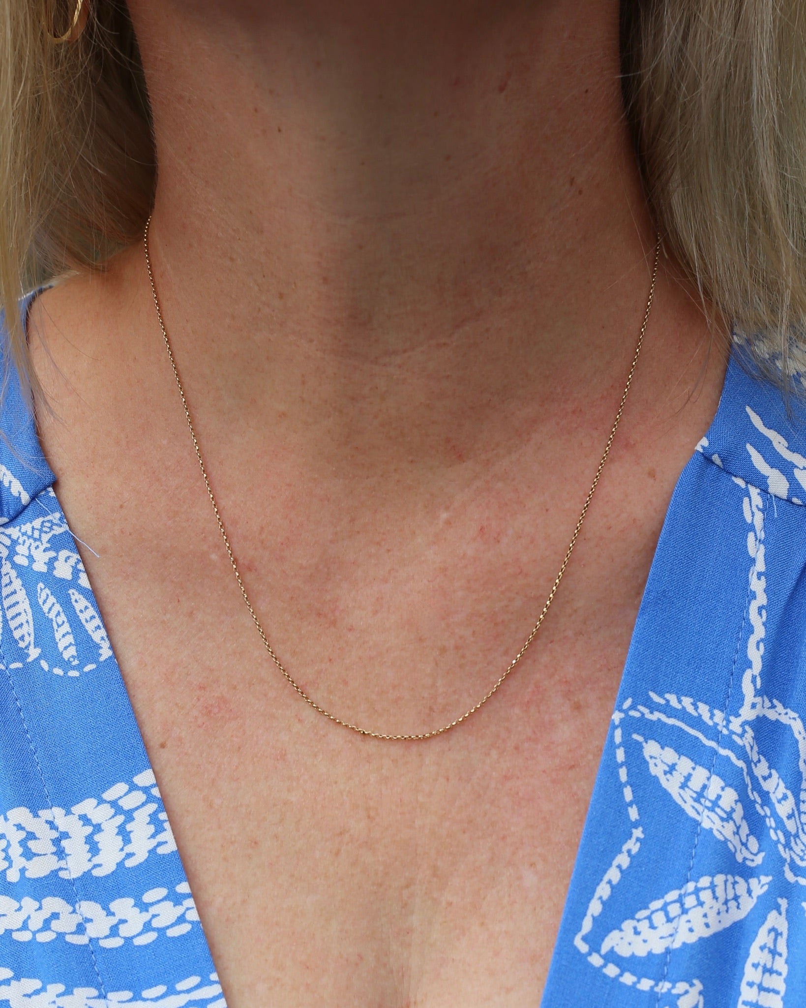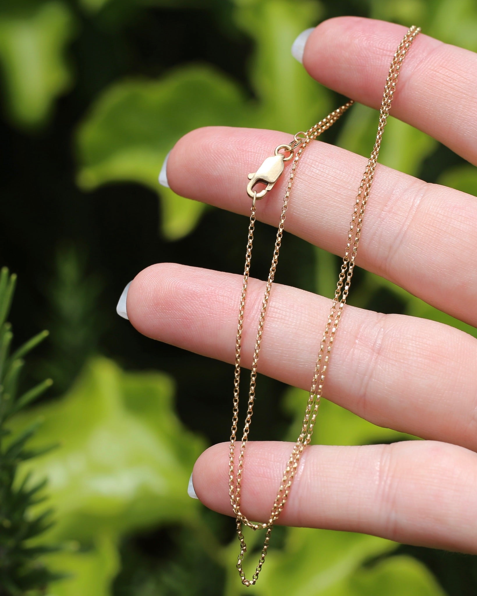 This chain is the most delicate little belcher and what that means to the naked eye is that the rounded outside edges of the chain catches the light and it twinkles and glistens. Perfect for your dainty pendants - and we have a couple in stock if you need one of those too!