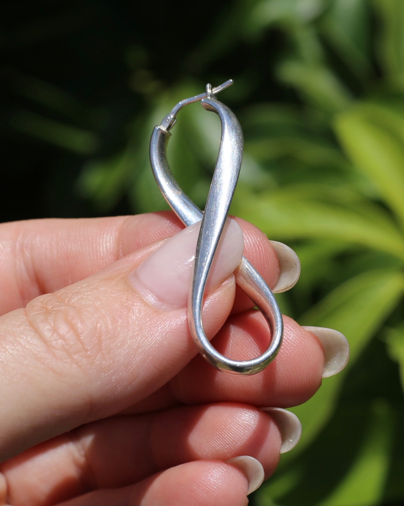 These infinity hoops are just fabulous on. Being hollow they are lovely and light and move effortlessly while having such presence of size. Italian made - these are delight.