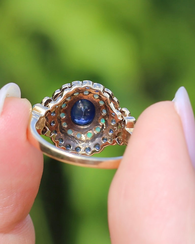 Natural Sapphire and Opal Cluster Ring, 9ct Yellow Gold, size P or 7.5, 4.04g