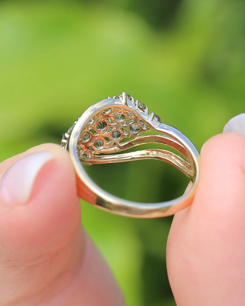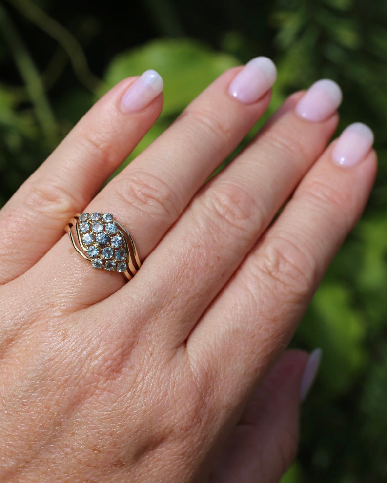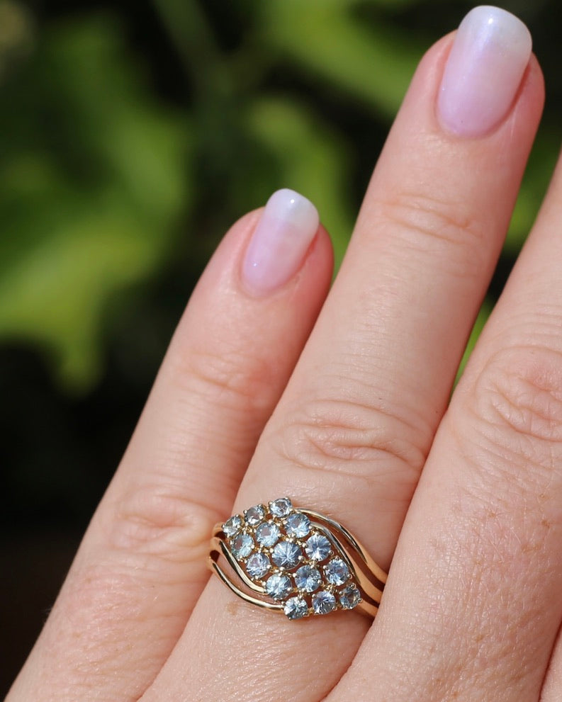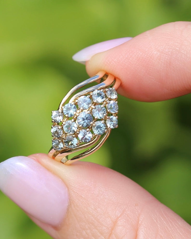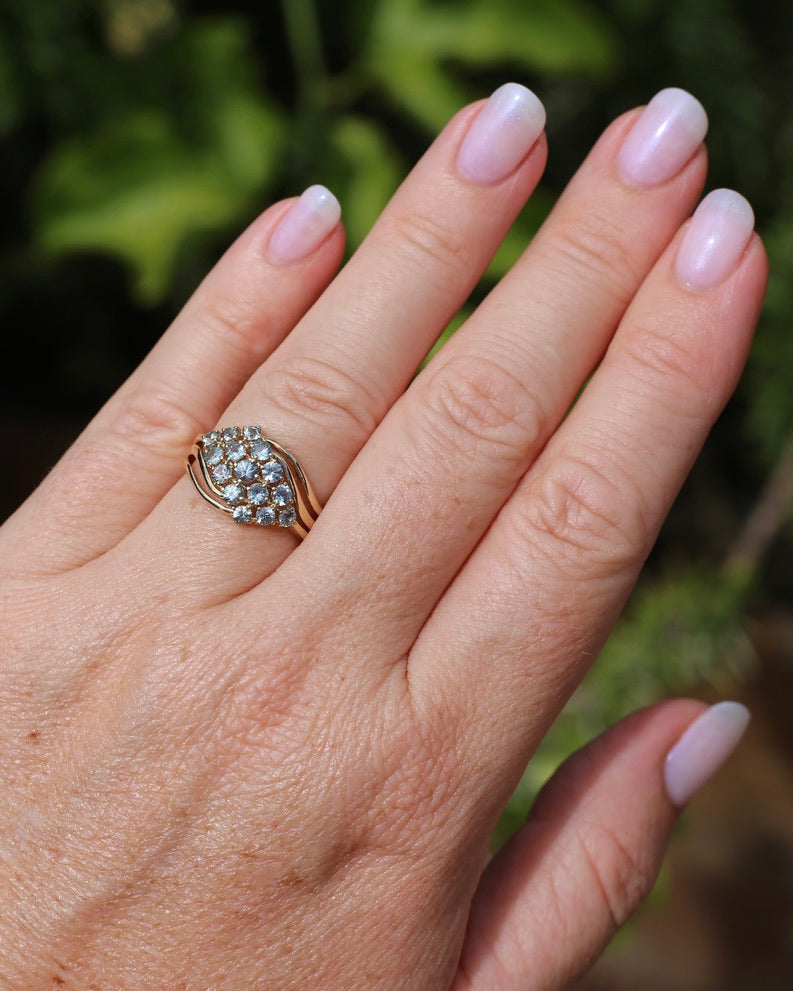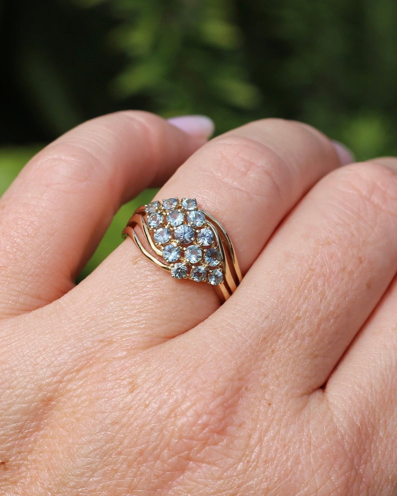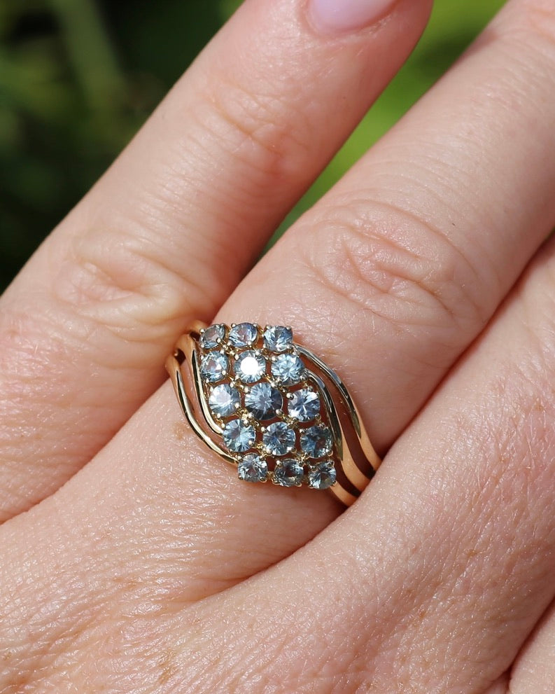 Pale Blue Parti Sapphire Bypass Cluster Ring, 9ct Yellow Gold, size P1/2 or 7.75, 2.75g