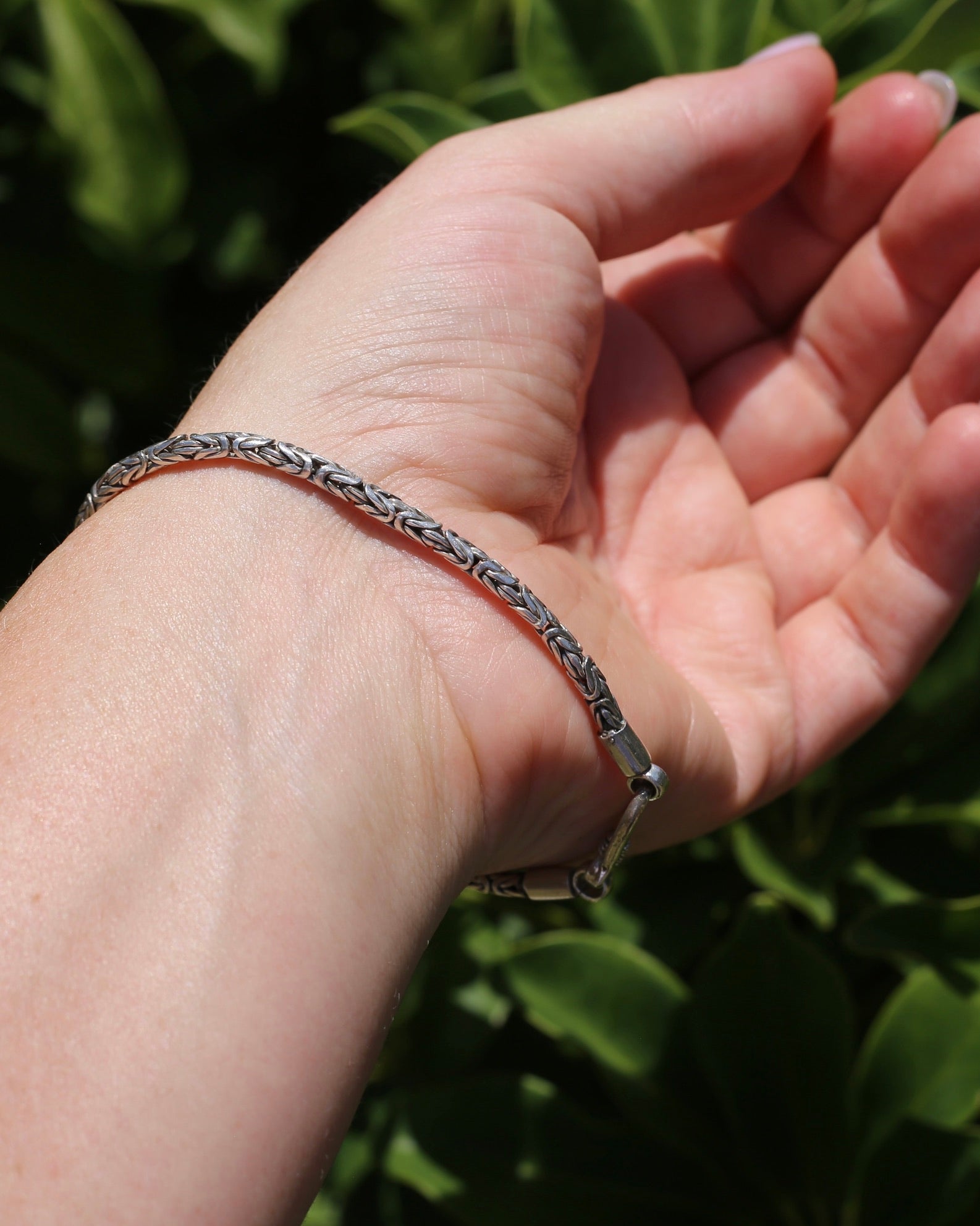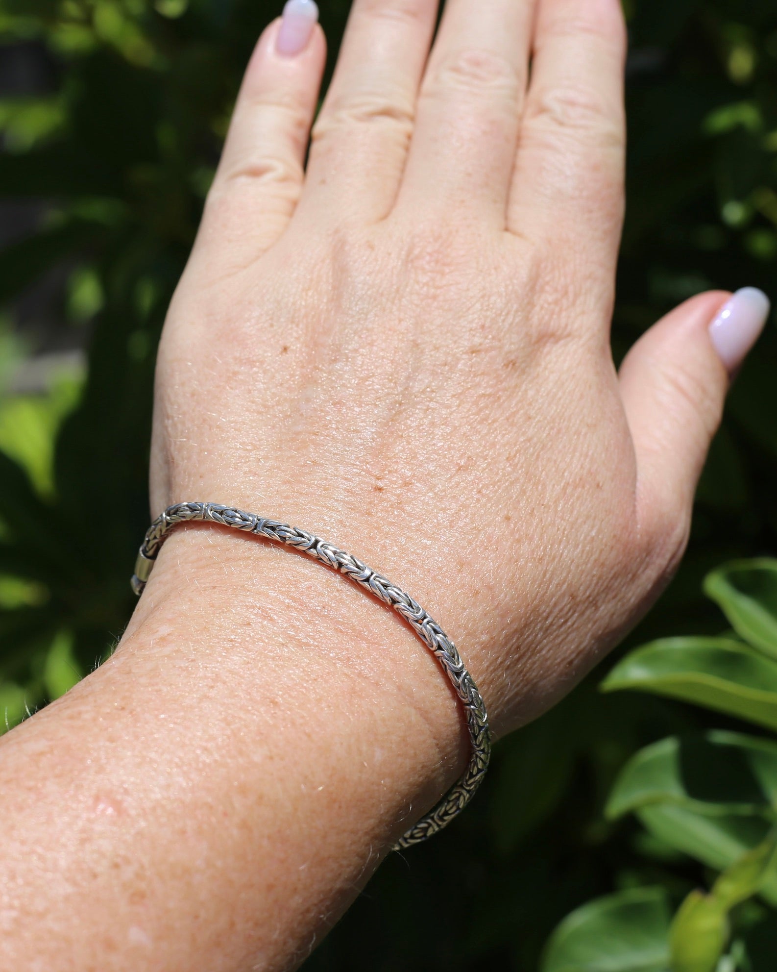 When it comes to fancy links - the byzantine has got to be the hero of the piece. The intricate way the silver moves back and forth and loops and plays - it is a sensory delight to feel and see.