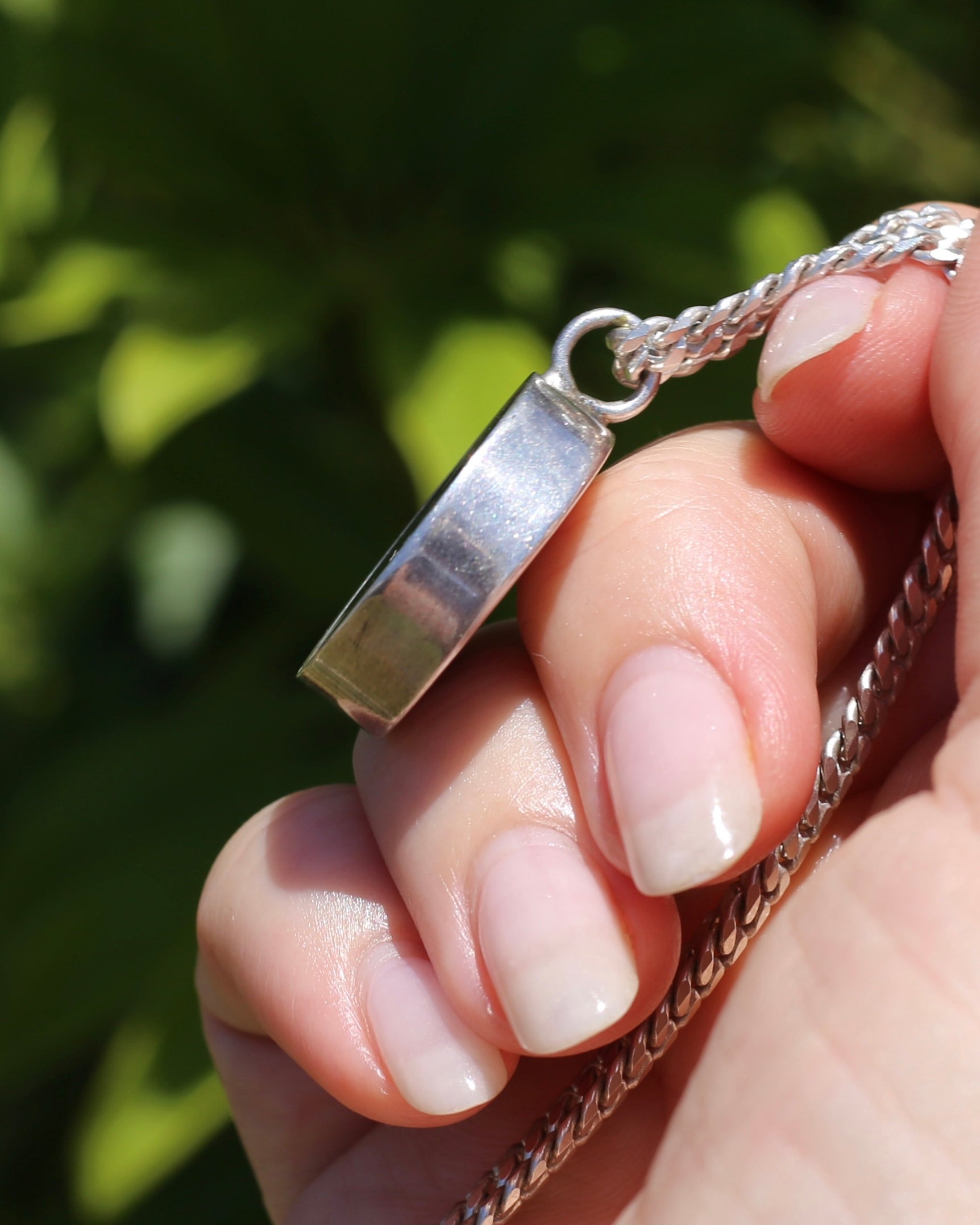 Vintage Chunky Black Agate and Silver Pendant, 13.2g