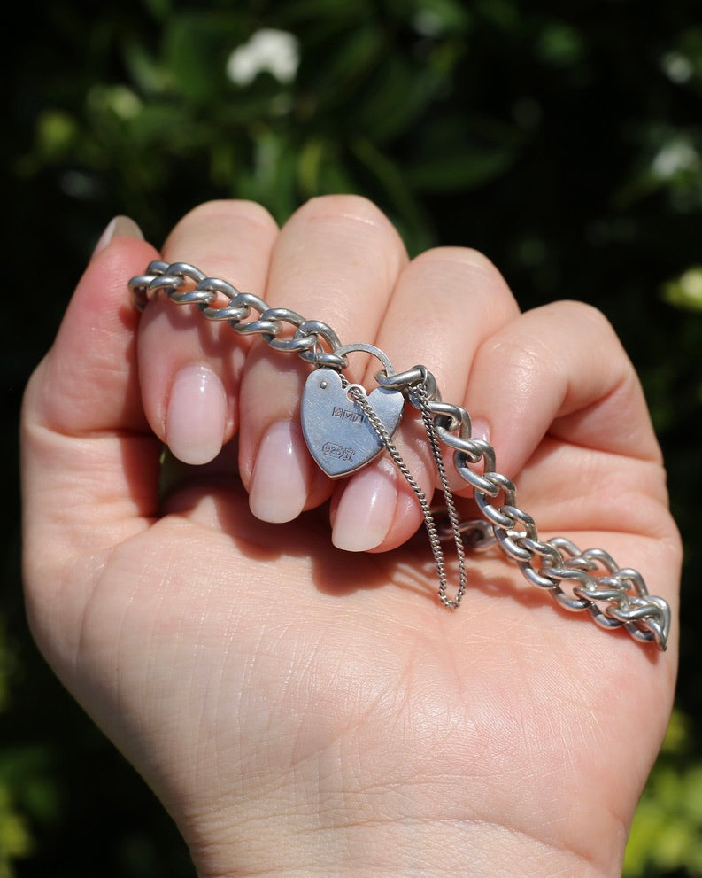 We love these vintage heart padlock bracelets. What would have been used as the start of a charm bracelet - and this one has travelled the seas - with the Eiffel tower mark on the back.