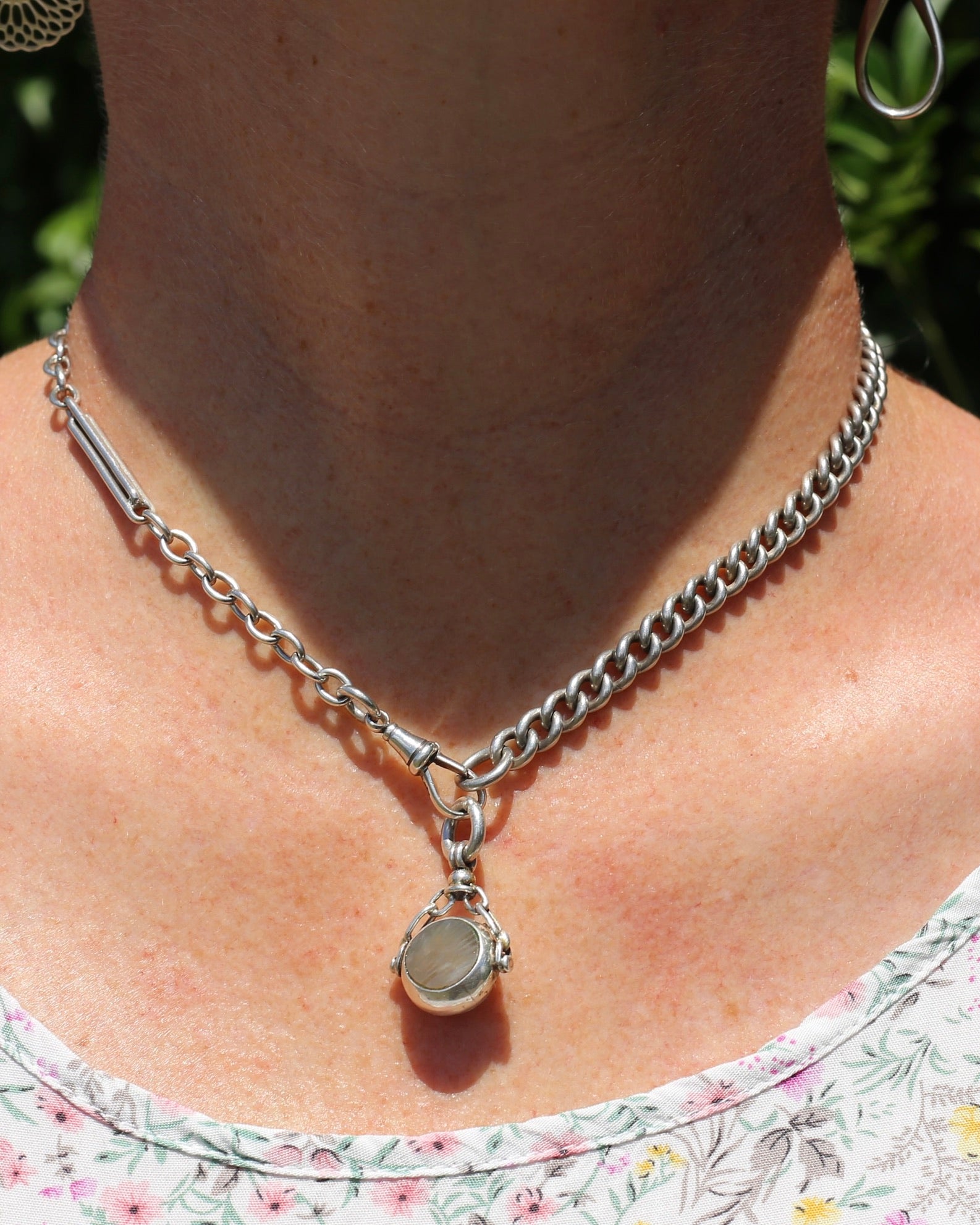 Vintique Spinner Fob with Chain Detail and Agate Faces, 5.4g